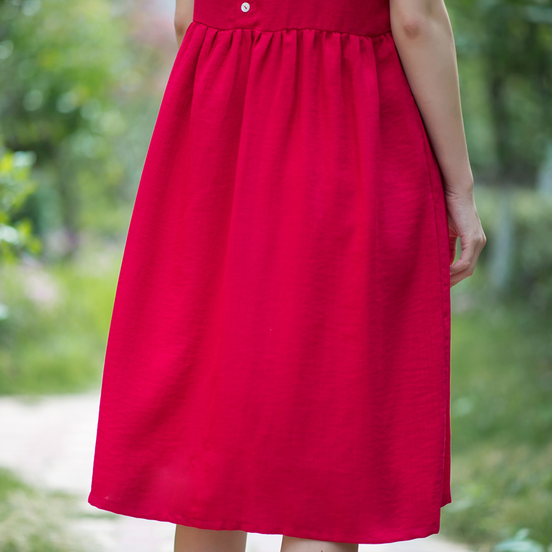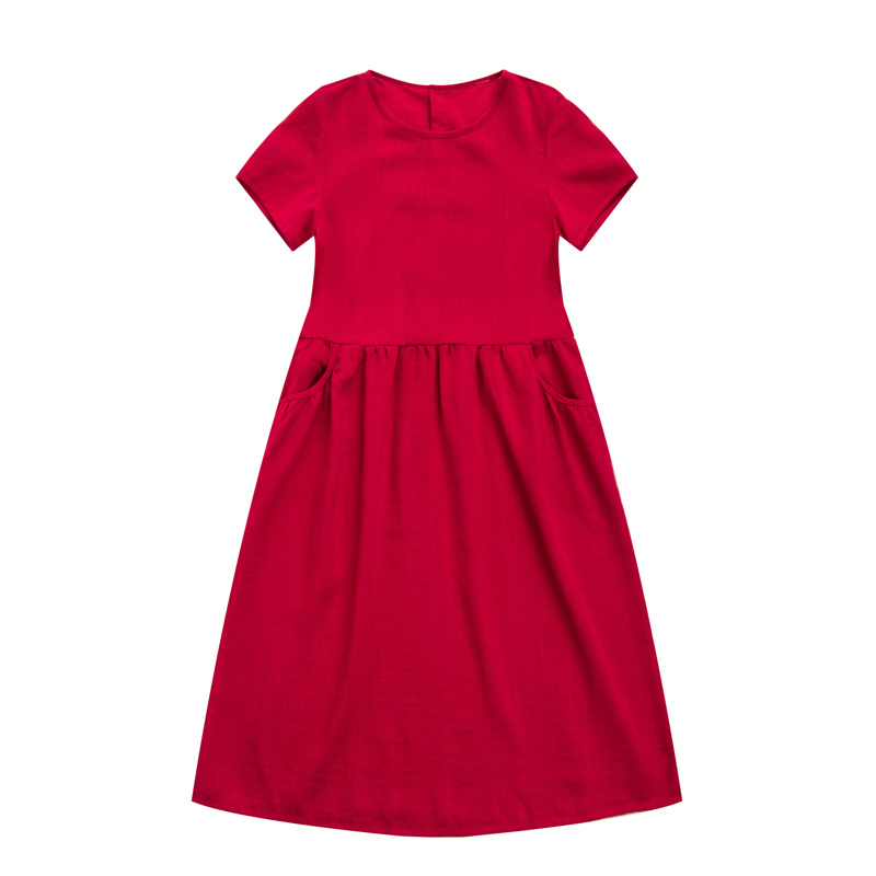 海边度假红色亲子母女连衣裙乐往
