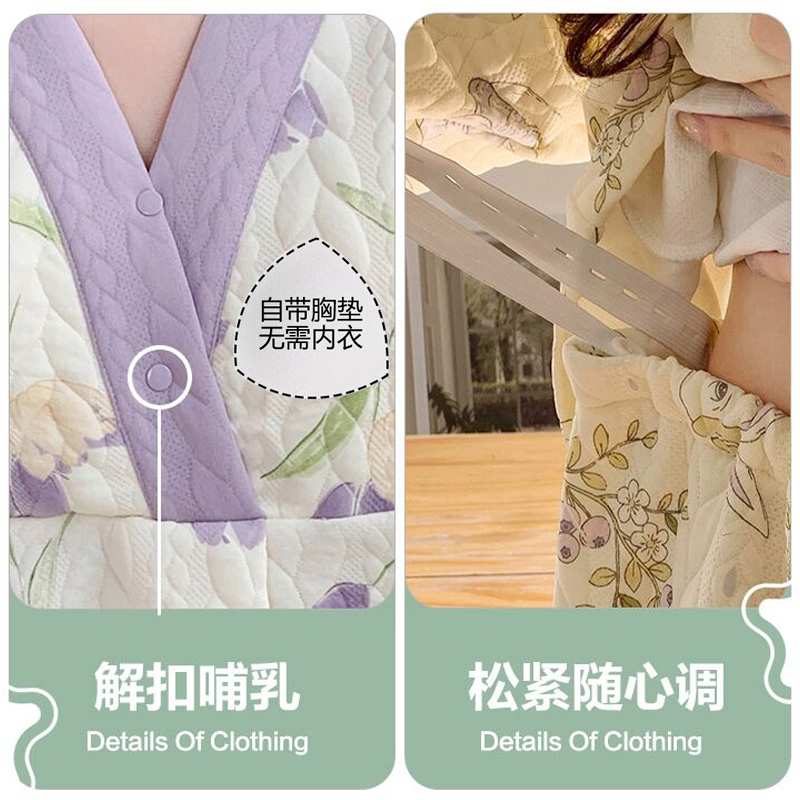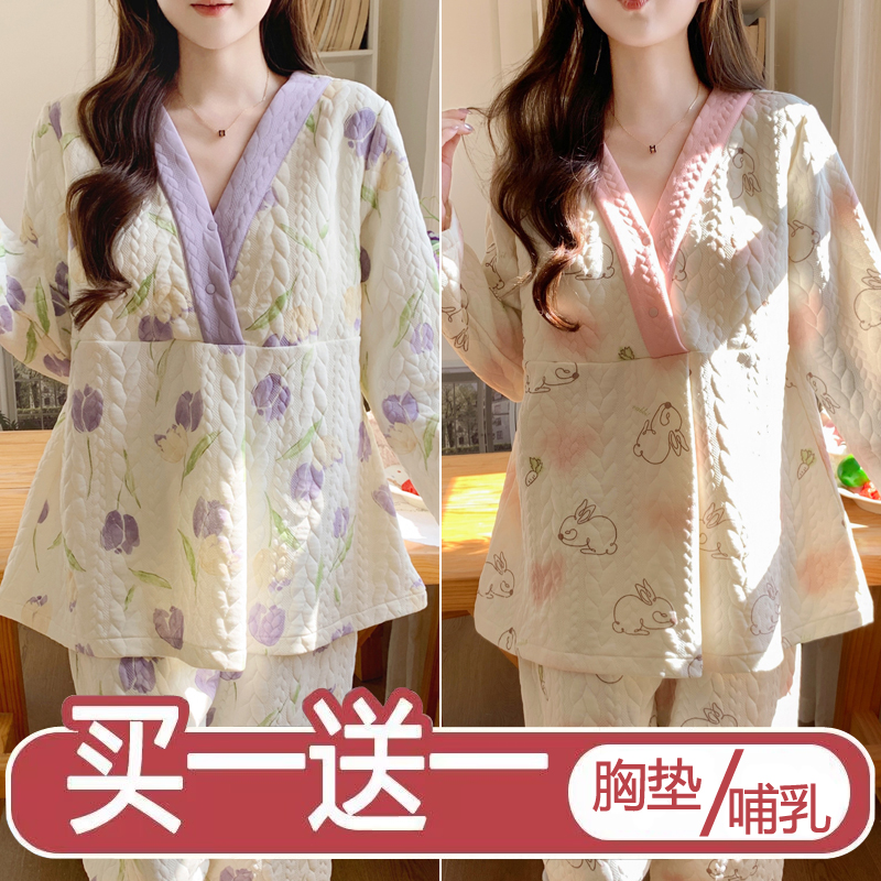 带胸垫空气棉月子服秋冬季加厚款产后产妇哺乳10孕妇睡衣11月份12