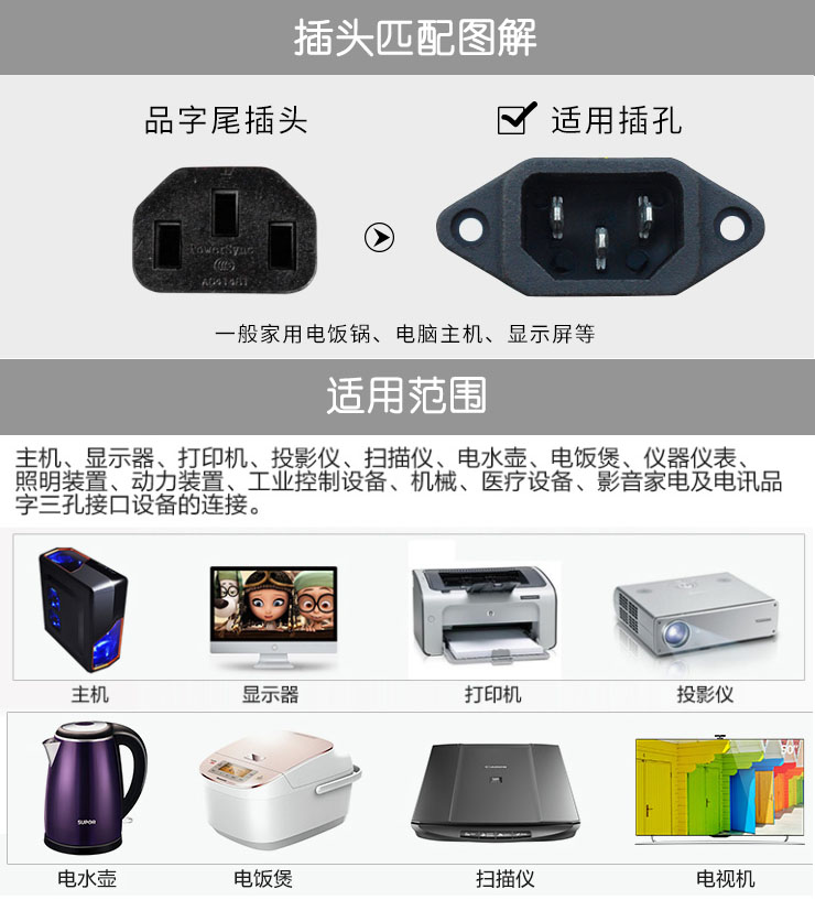 1平方2500W铜包铝 电脑台式主机3芯显示器电饭煲锅水壶电源线插头