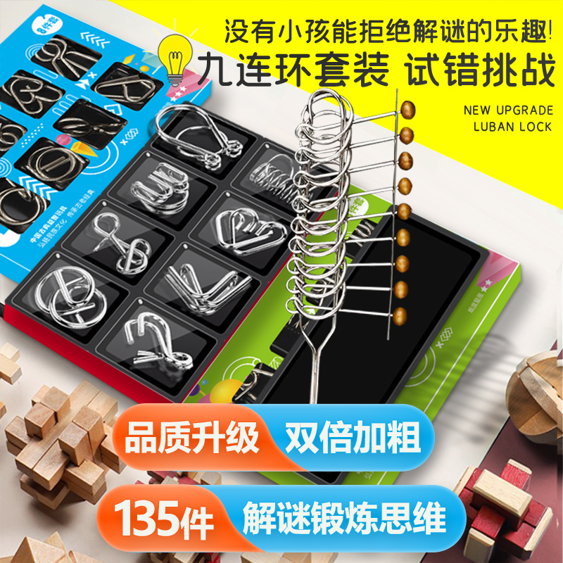 孔明锁鲁班锁九连环智力解环解扣24件套儿童益智逻辑思维训练玩具