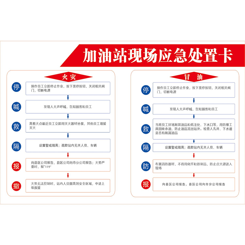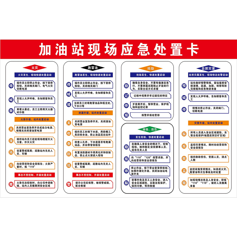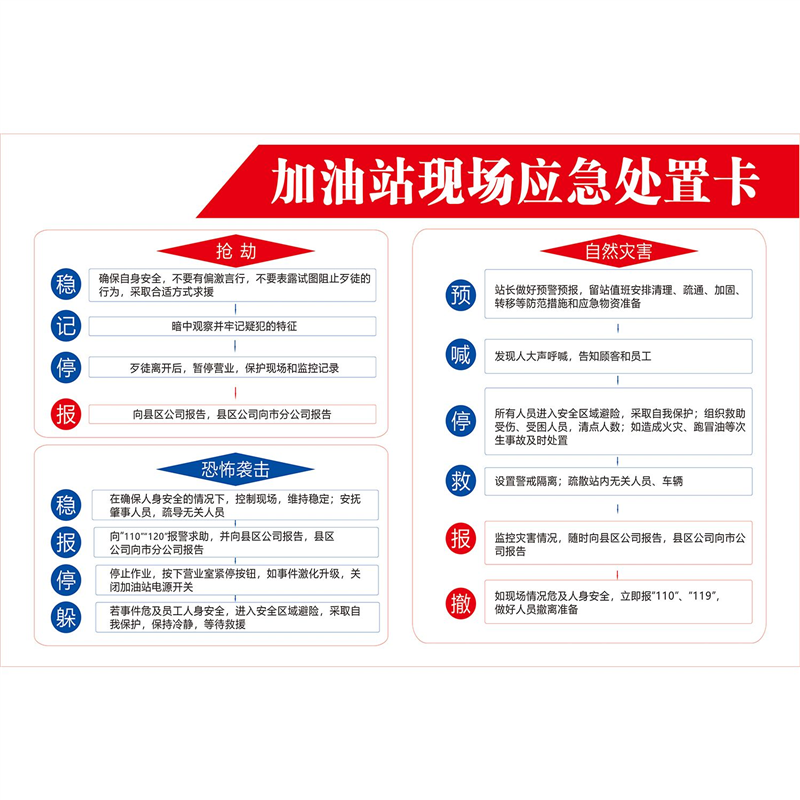 现场应急处置卡海报加油站现场应急处置卡岗位应急处置卡墙贴纸