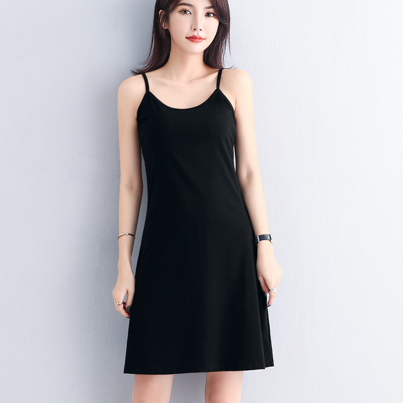 黑色吊带连衣裙女内搭夏季新款性感收腰气质打底a字背心裙中长款