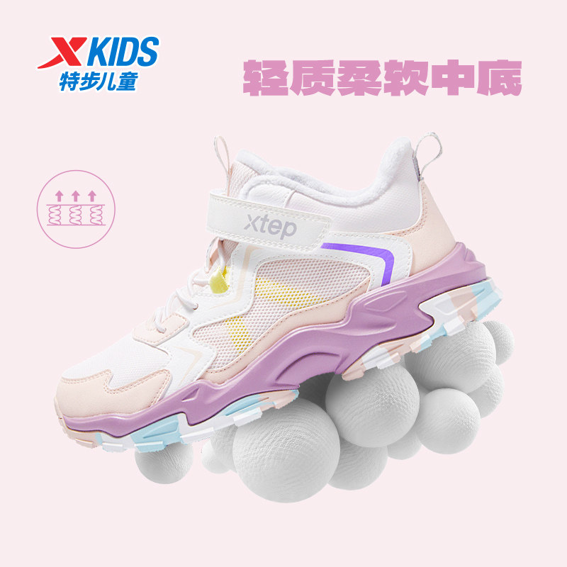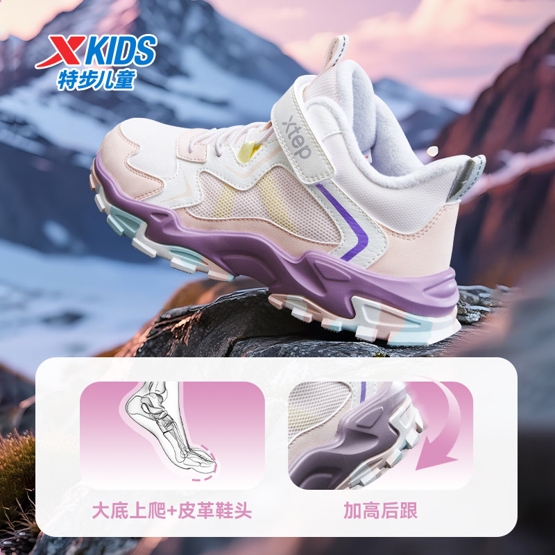 特步童鞋儿童运动棉鞋女童秋冬新款正品防风高帮运动鞋保暖休闲鞋