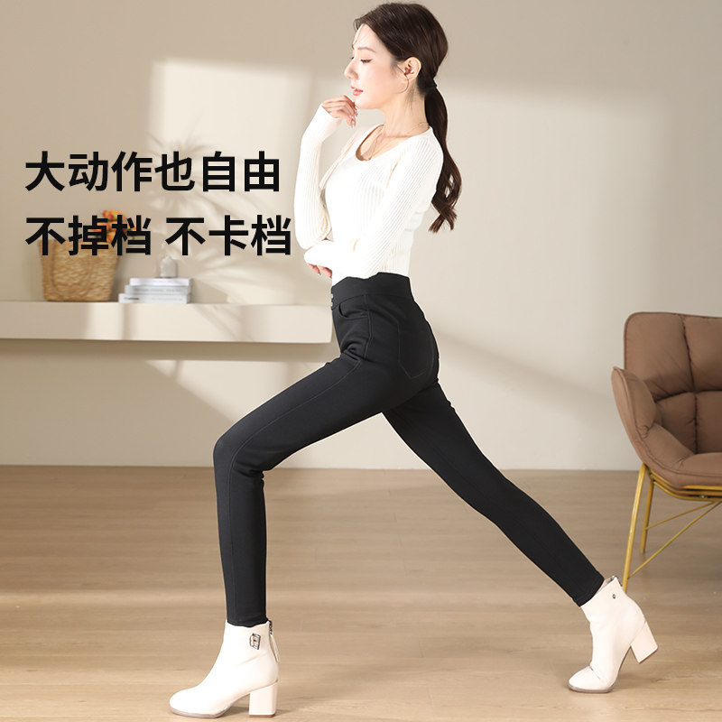高腰打底裤女2025新款冬外穿加绒加厚保暖棉裤黑色紧身铅笔小脚裤