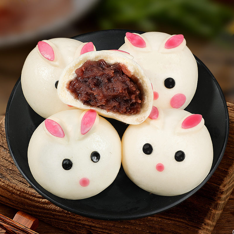 卡通包子馒头玉兔兔子包儿童早餐豆沙包半成品瑞兔生肖年馍新年
