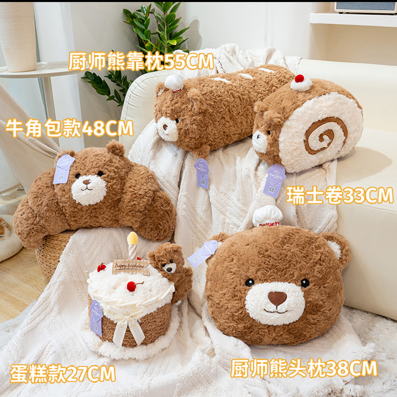 可爱面包小熊牛角包玩偶抱枕毛绒玩具公仔布娃娃儿童生日礼物女生