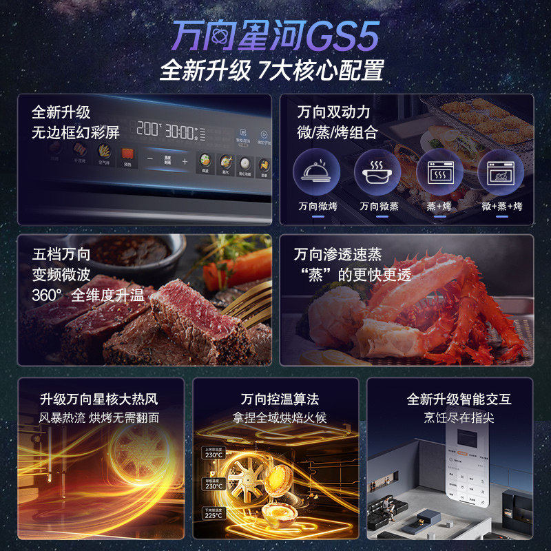 美的GS5微蒸烤一体机家用嵌入式蒸烤箱智能微波炉炸炖