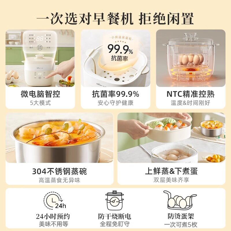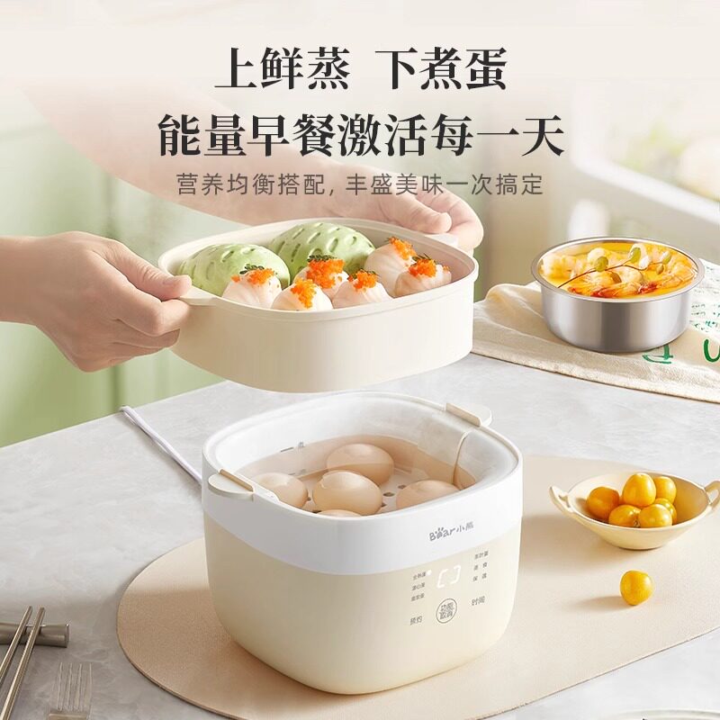 小熊温泉蛋机煮蛋器电蒸锅家用预约定时上蒸下煮多功能早餐神器