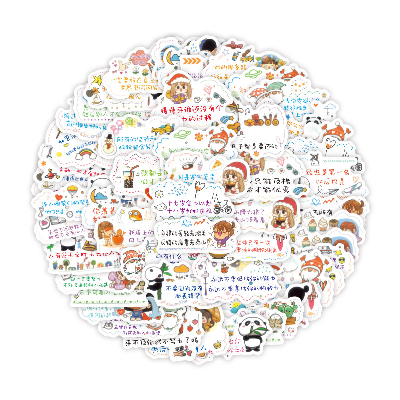 60张新款励志文字装饰贴卡通可爱小清新DIY创意个性防水贴儿童贴