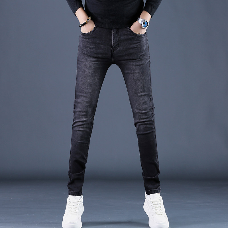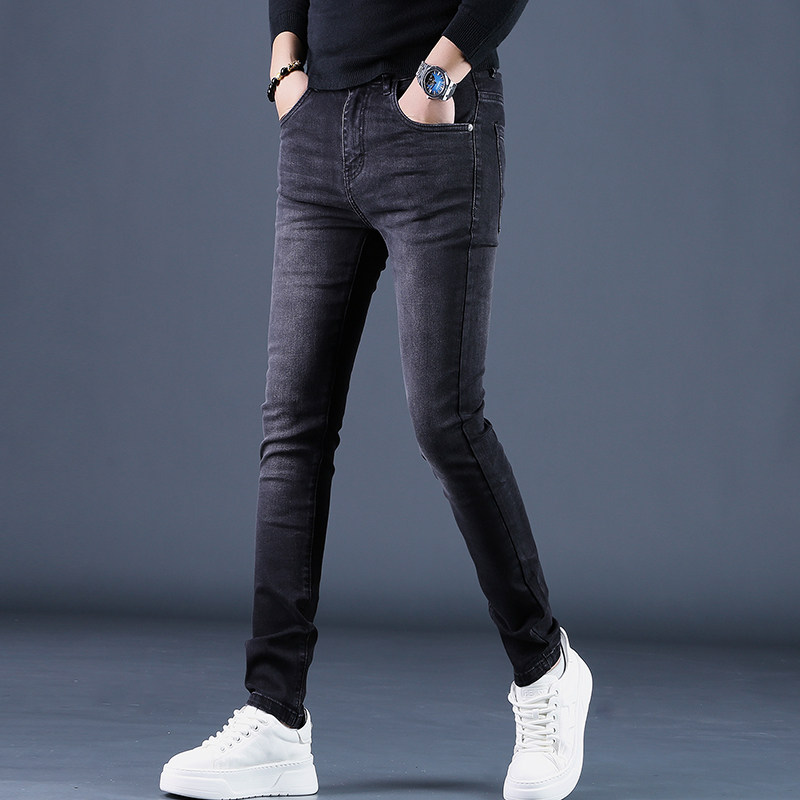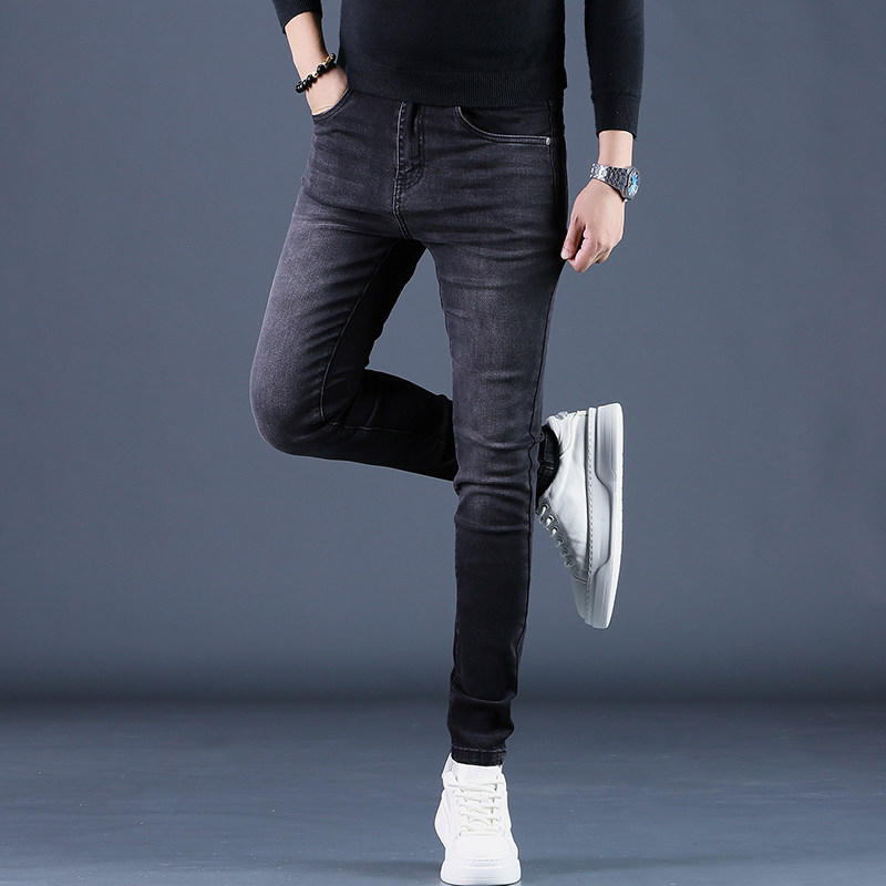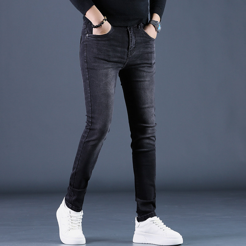 高端加绒黑色牛仔裤男款秋冬季2025年新款小脚修身弹力裤子男士潮