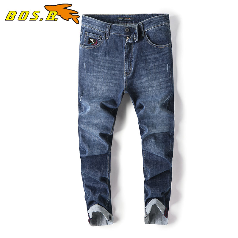 博世堡飞鱼牛仔裤男春季新款潮流休闲合体萝卜裤做旧弹力九分裤
