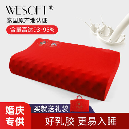 结婚乳胶枕芯对枕红色喜庆双人家用护颈椎枕头床上用品陪嫁枕一对