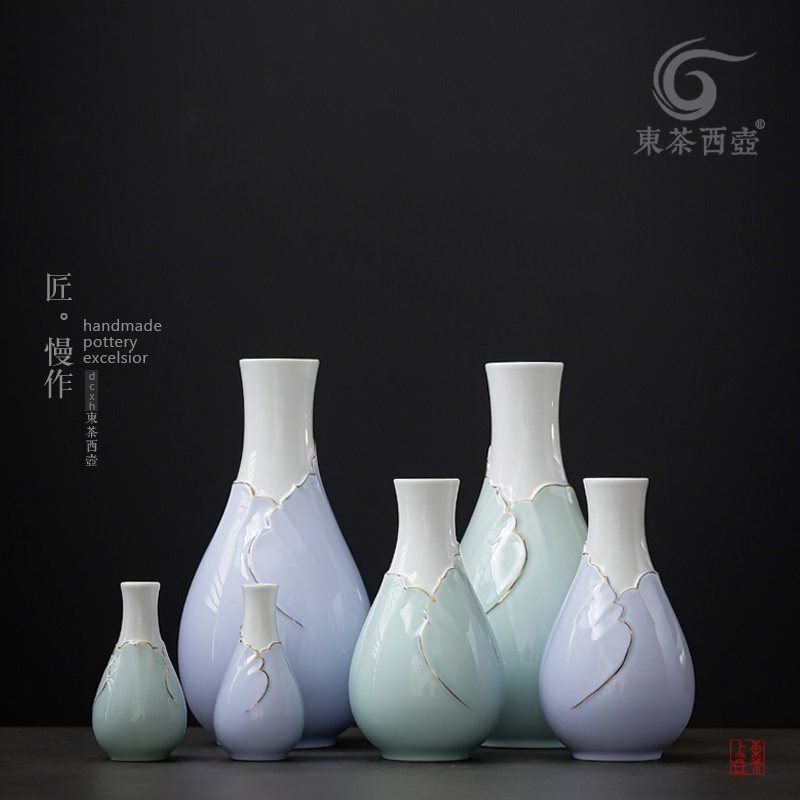 东茶西壶创意青瓷插花小花瓶水养迷你客厅桌面干花水培插花器陶瓷