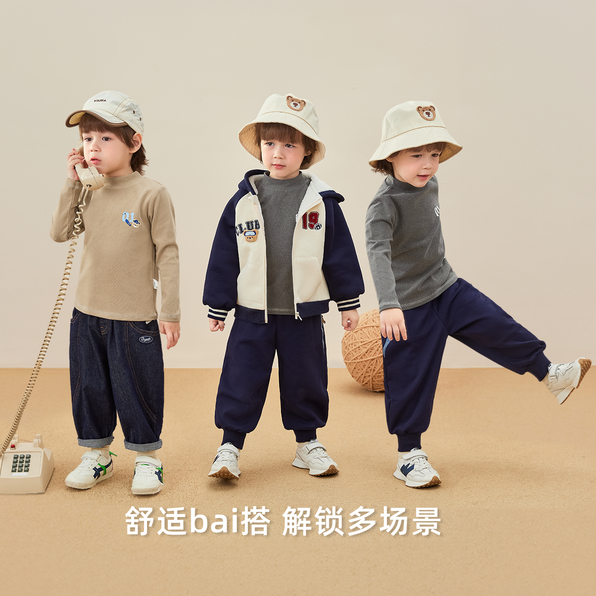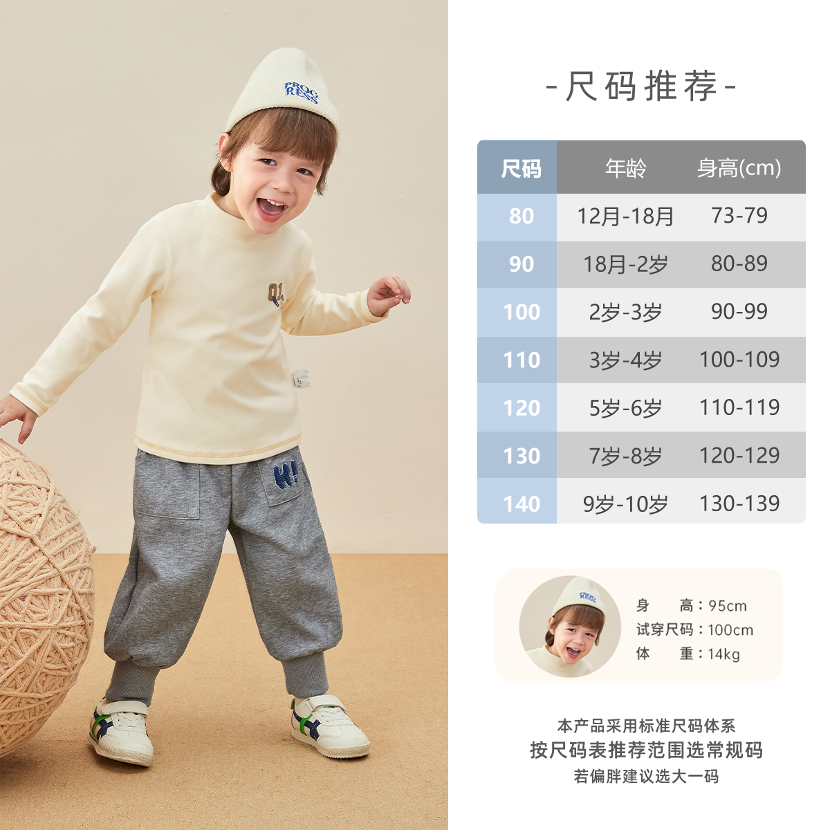 [抗菌远红外]男童长袖t恤儿童高领加绒秋冬衣服保暖衣6宝宝打底衫
