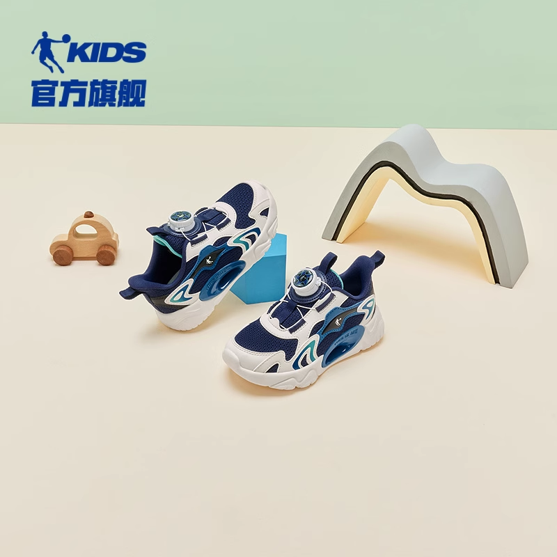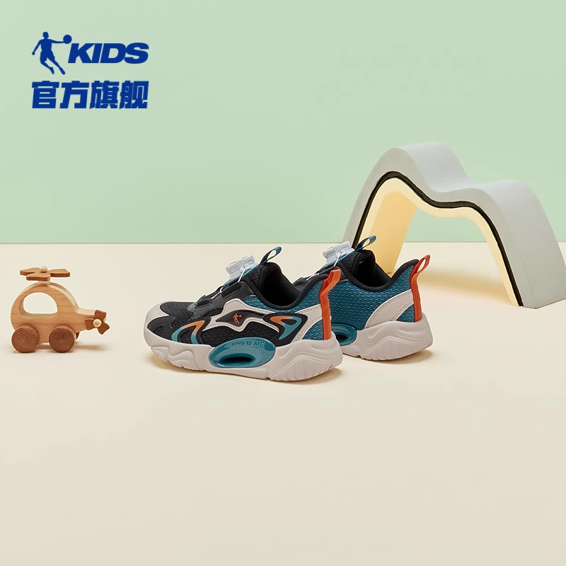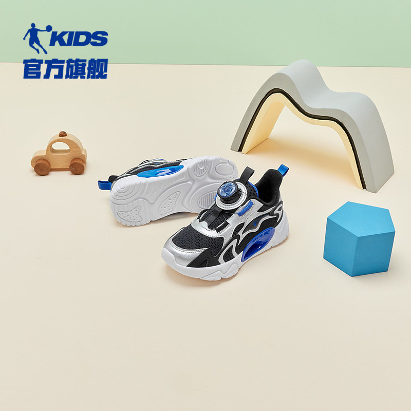 乔丹童鞋男小童运动鞋2025春季新款舒适防滑耐磨旋钮扣儿童跑步鞋