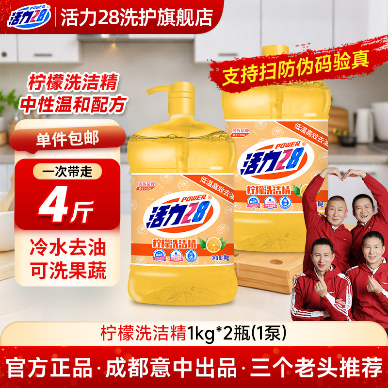 活力28柠檬洗洁精家用果蔬清洁剂洗碗液洗涤灵厨房去油渍实惠大桶