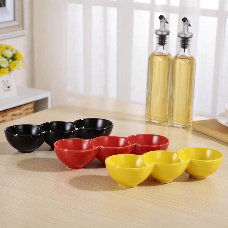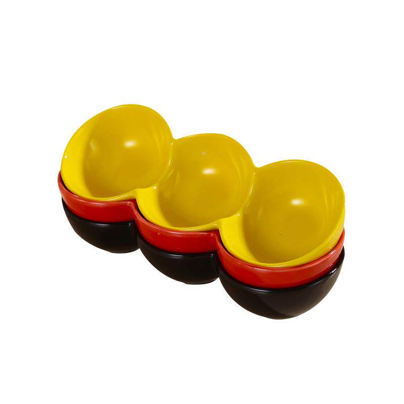 彩色创意水果盘三格小食盘下午茶点心盘永安三连碗分格酱料碟定制