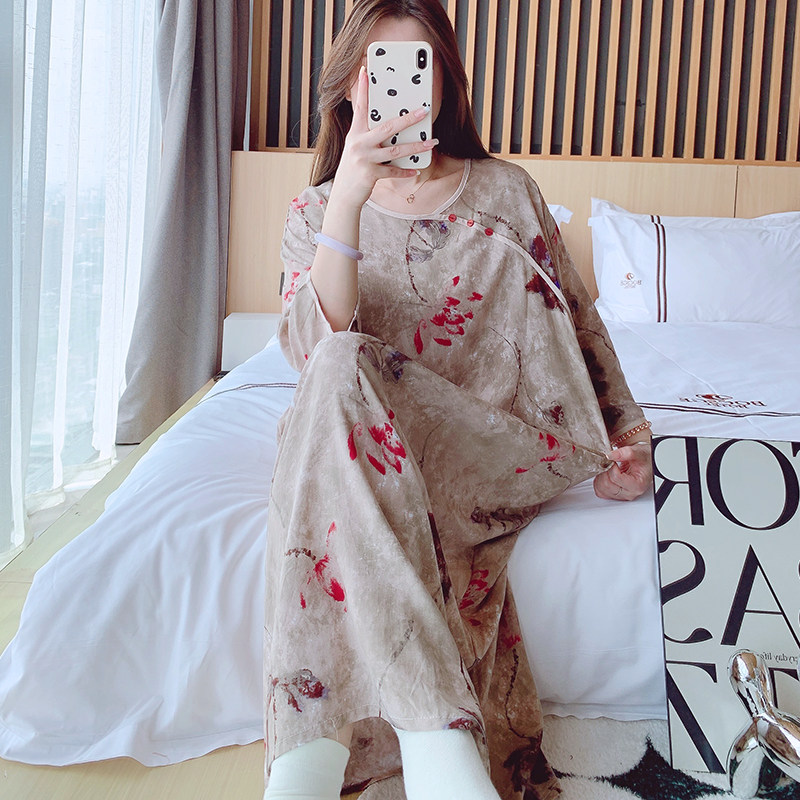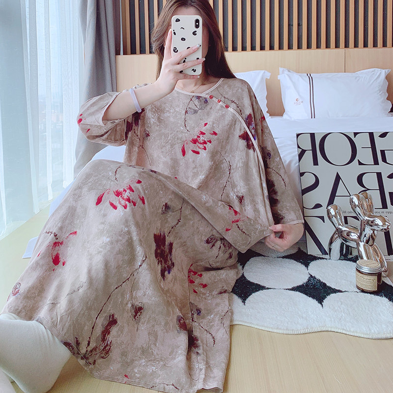 国风睡裙女夏季棉绸睡衣薄款高级感可外穿家居服连衣裙夏天中长款