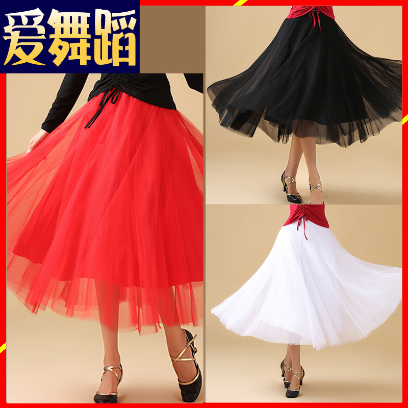 广场舞服装新款跳舞网纱裙女中老年红色半身裙中长裙春夏秋黑裙子
