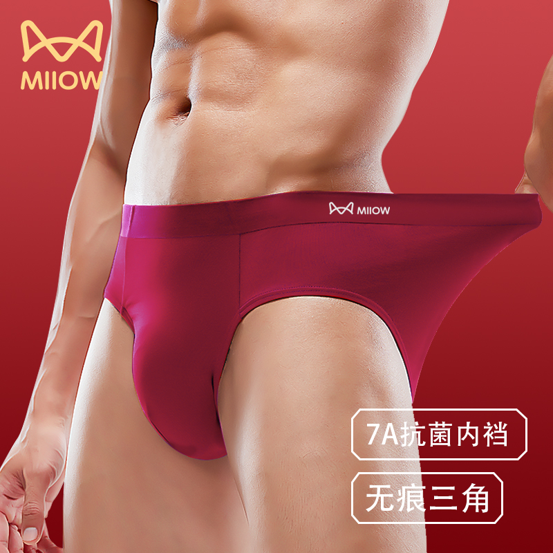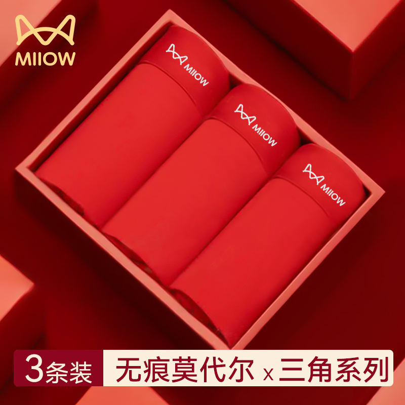 MiiOW/猫人红色本命年莫代尔男士三角内裤无痕透气抗菌男生短裤夏