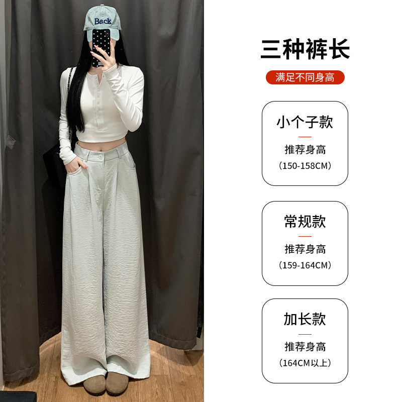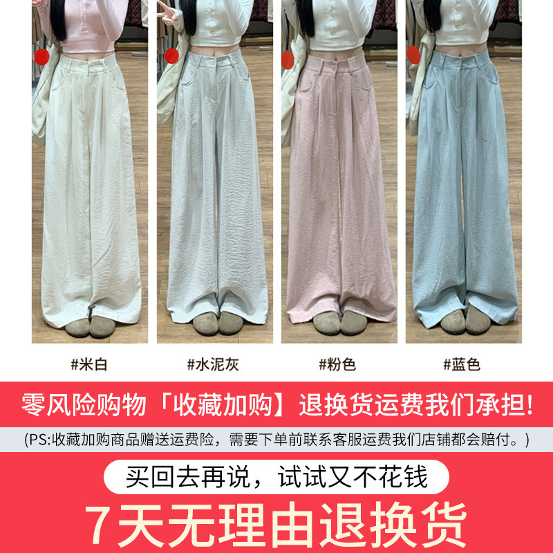 水泥灰阔腿裤女春秋季2026新款高腰垂感小个子直筒奶芙山本西装裤
