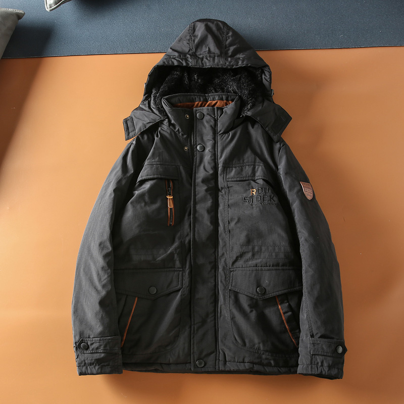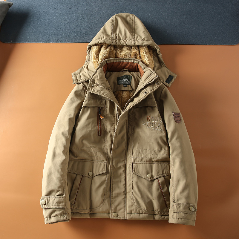 秋冬新款 美式复古休闲羊羔绒加绒加厚保暖男士连帽工装棉服外套