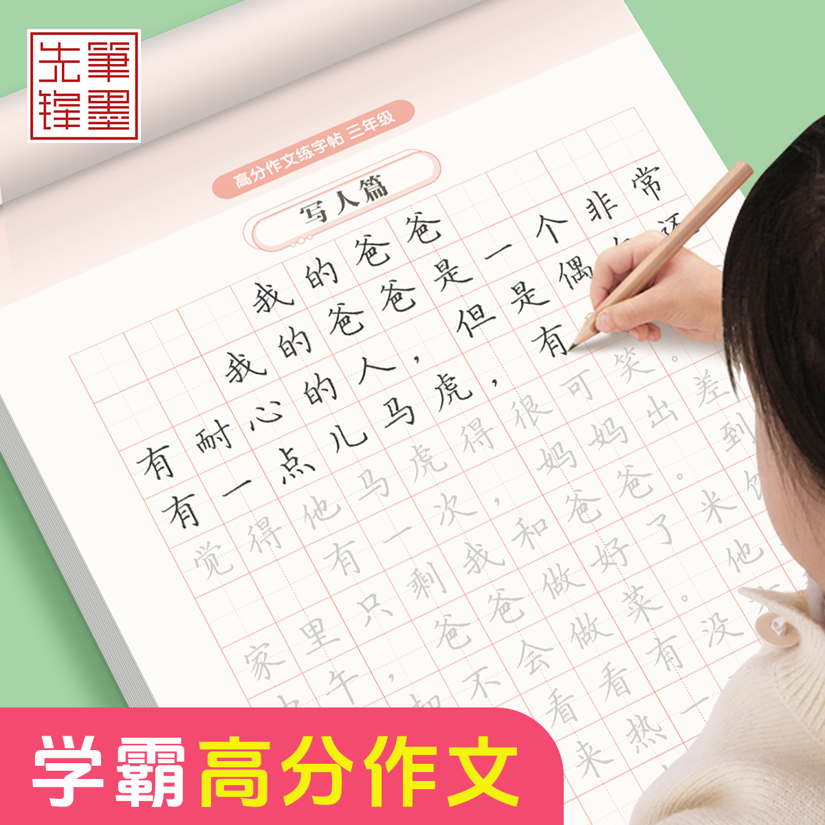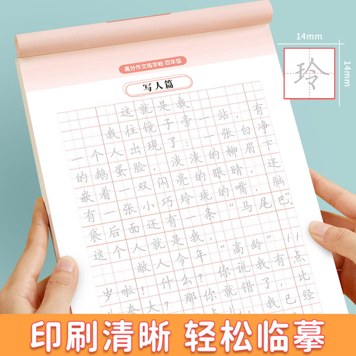 小学生高分作文练字帖双面临摹高分写作范文写人写物写景三四五六年级语文同步学霸高分作文练字帖部编人教版硬笔练字作文字帖