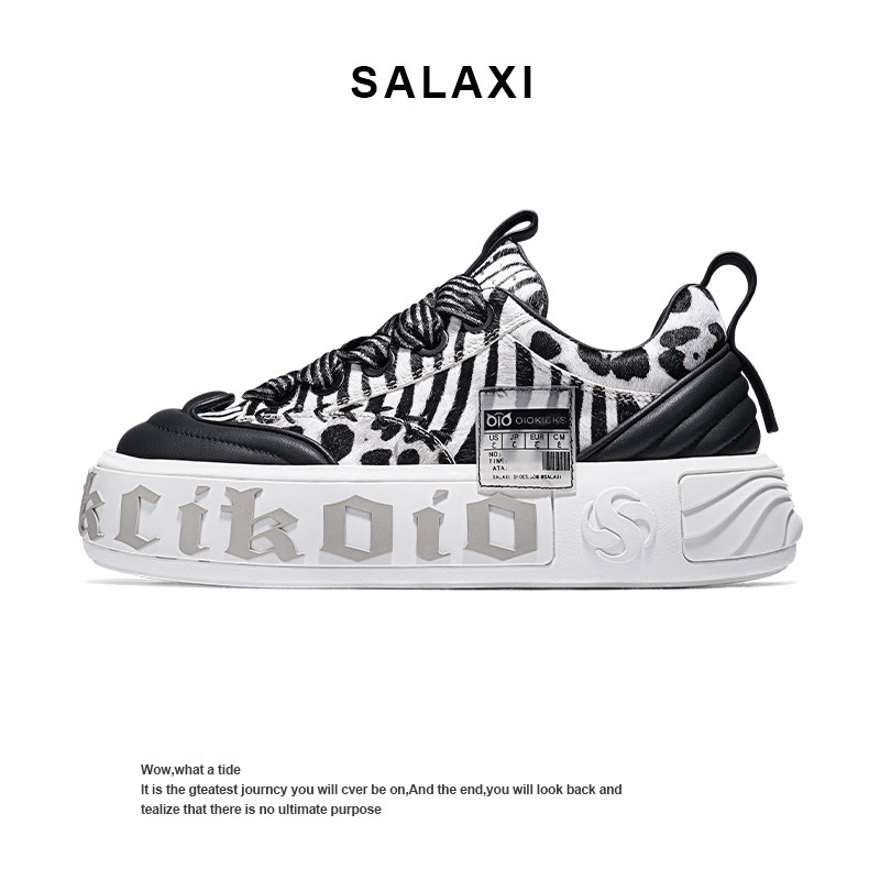 Salaxi莎莱茜动物世界豹纹鞋女2025秋冬新款休闲鞋男增高厚底板鞋