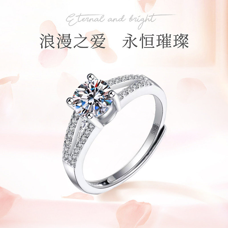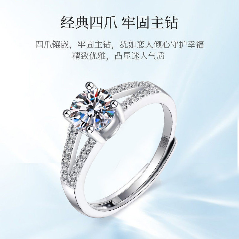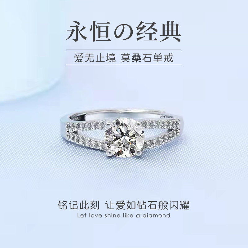 新款莫桑石钻戒女一克拉仿真钻四爪活口时尚设计求婚结婚生日礼物