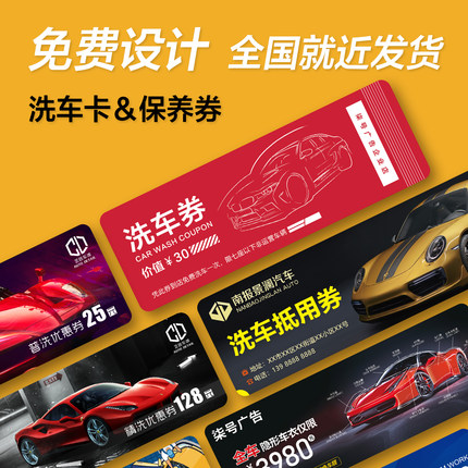 洗车卡定制汽车美容代金券印刷4S保养卡券订制汽修厂优惠券印刷