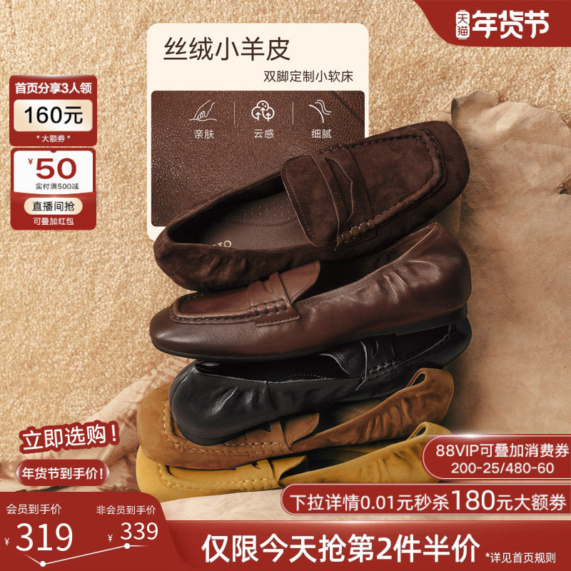 百思图26春新款绒面羊皮鞋miu系乐福鞋英伦豆豆鞋女单鞋UXE01AA6