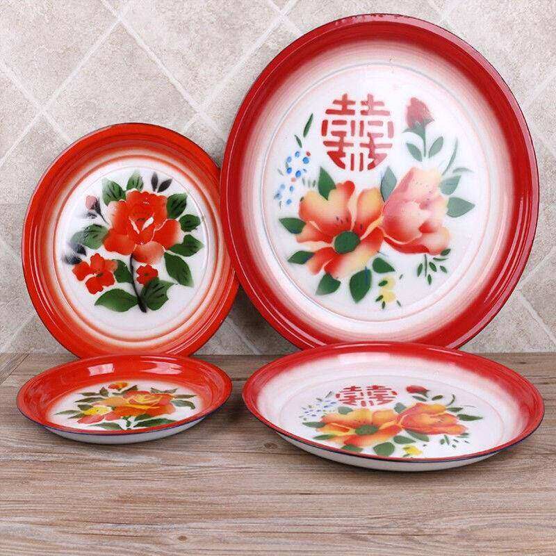茶盘,老式搪瓷圆盘,覆古怀旧茶盘,汤盘,大托盘,鸡肉,水果盘