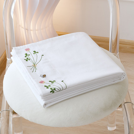 出口英国绣花纯棉床单单件双人100%全棉斜纹睡单刺绣床上用品特价