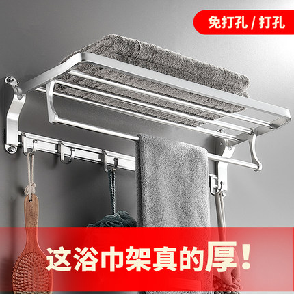 浴巾架免打孔卫生间浴室太空铝毛巾架挂钩置物架壁挂打孔收纳挂件