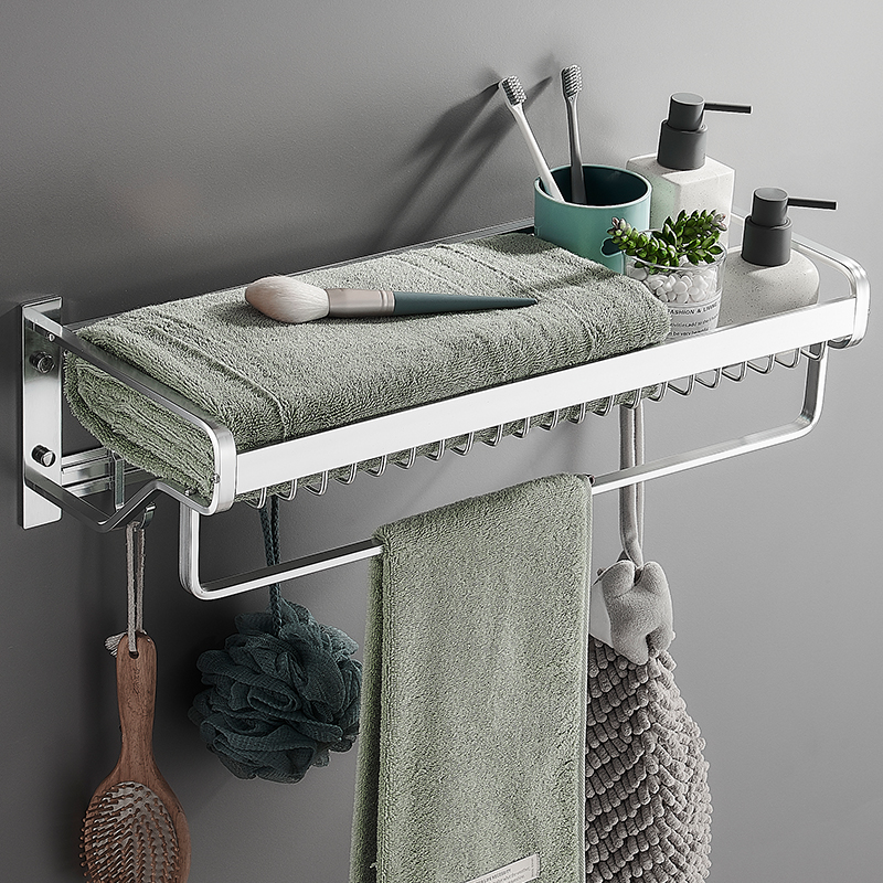 免打孔太空铝壁挂收纳浴巾架