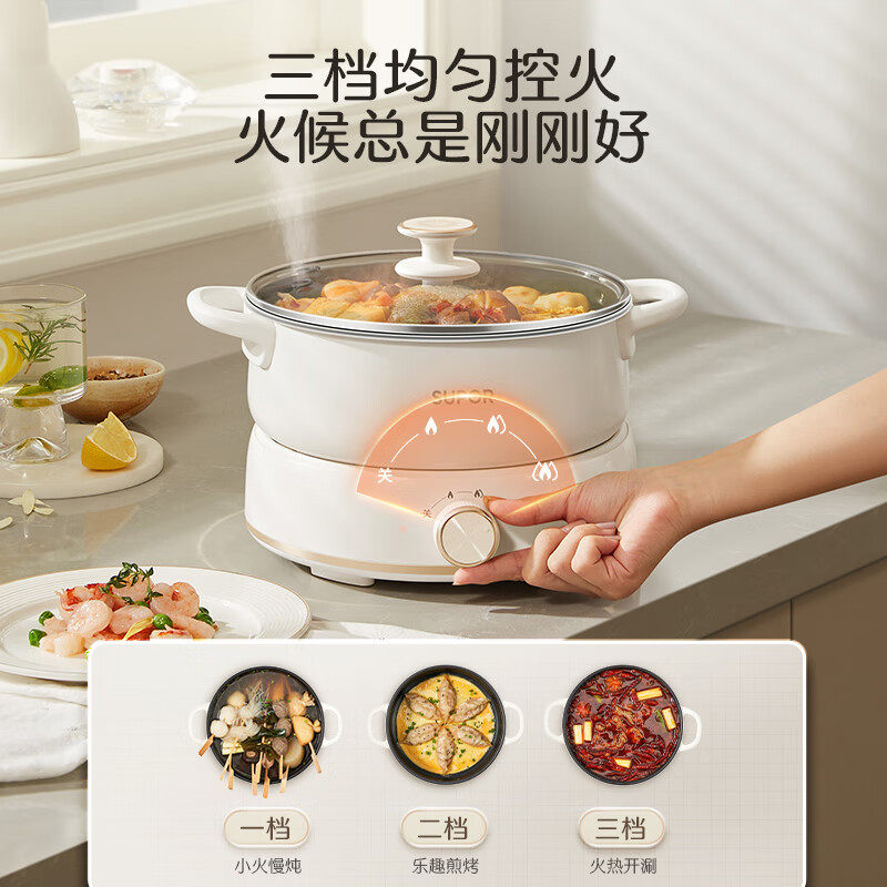 苏泊尔电火火锅家用分体式多功能电热火锅电炒菜锅电煎锅蒸锅新款