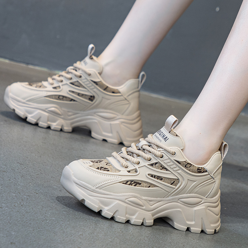 真皮爆款老爹鞋女5cm秋新款ins潮百搭黑色单鞋显瘦厚底运动休闲鞋