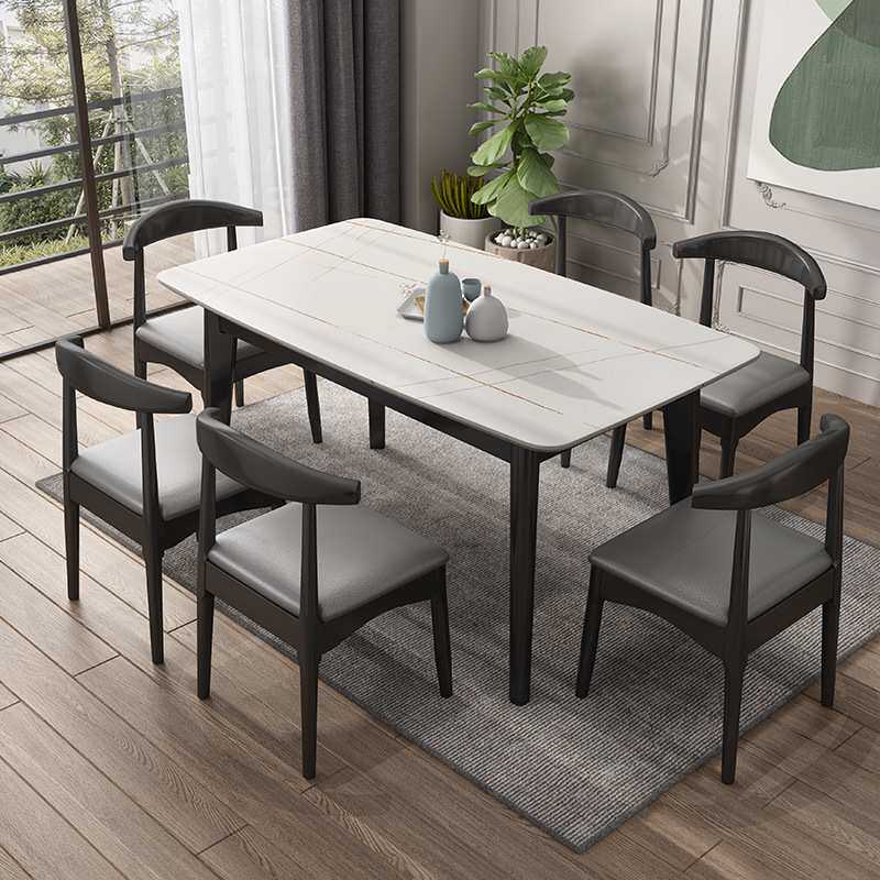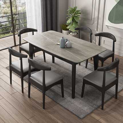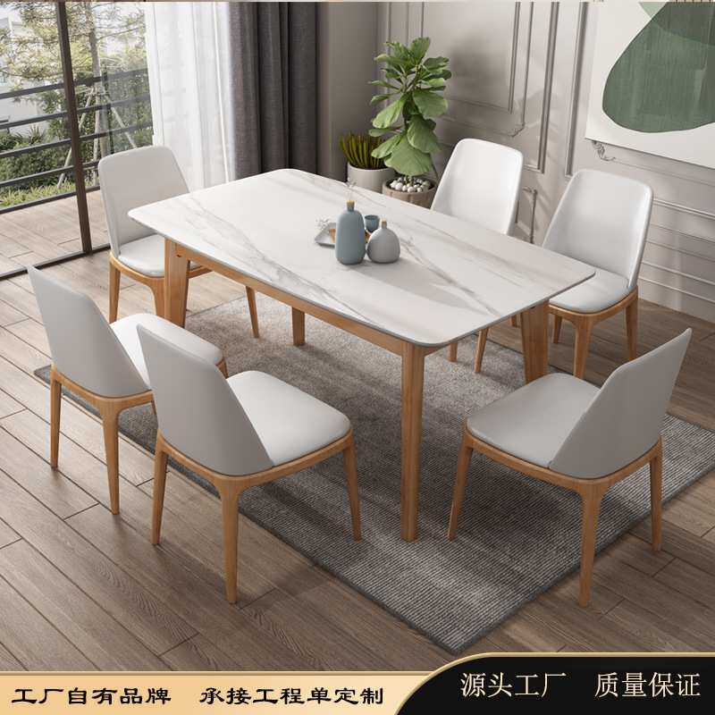 岩板餐桌家用方形北欧吃饭桌简约现代桌椅组合小户型餐厅成套家具