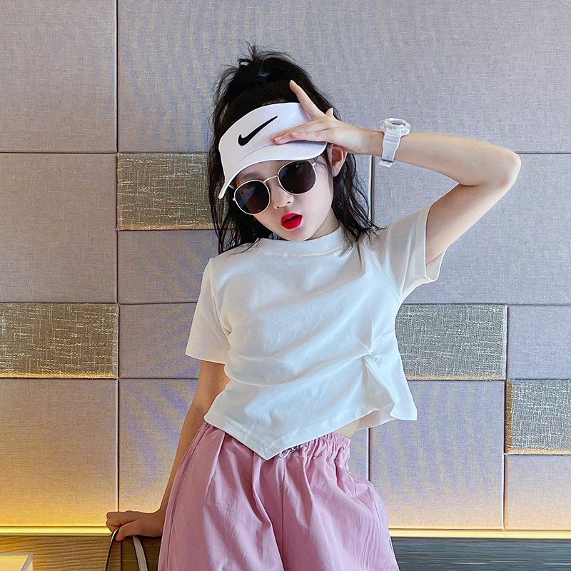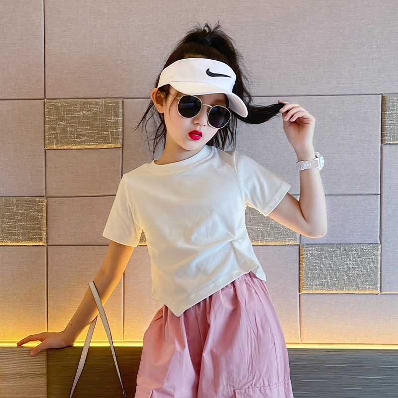 速发女童白色t恤夏季童装20x23新款儿童纯棉短款上U衣女大童夏装