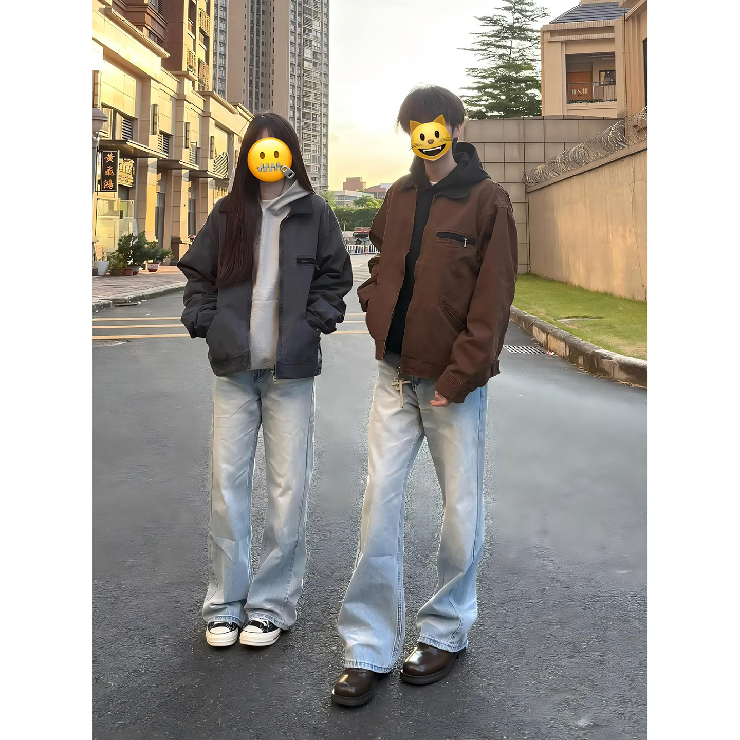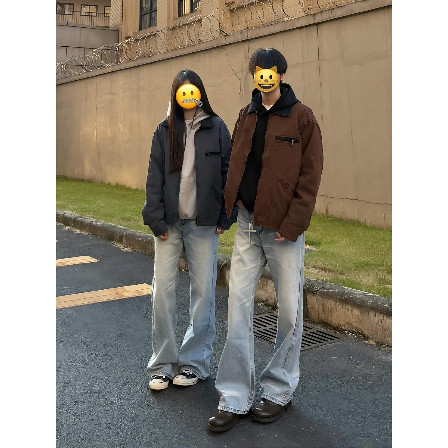 巴恩风翻领工装外套男女春秋季美式复古底特律夹克潮牌短款棒球服