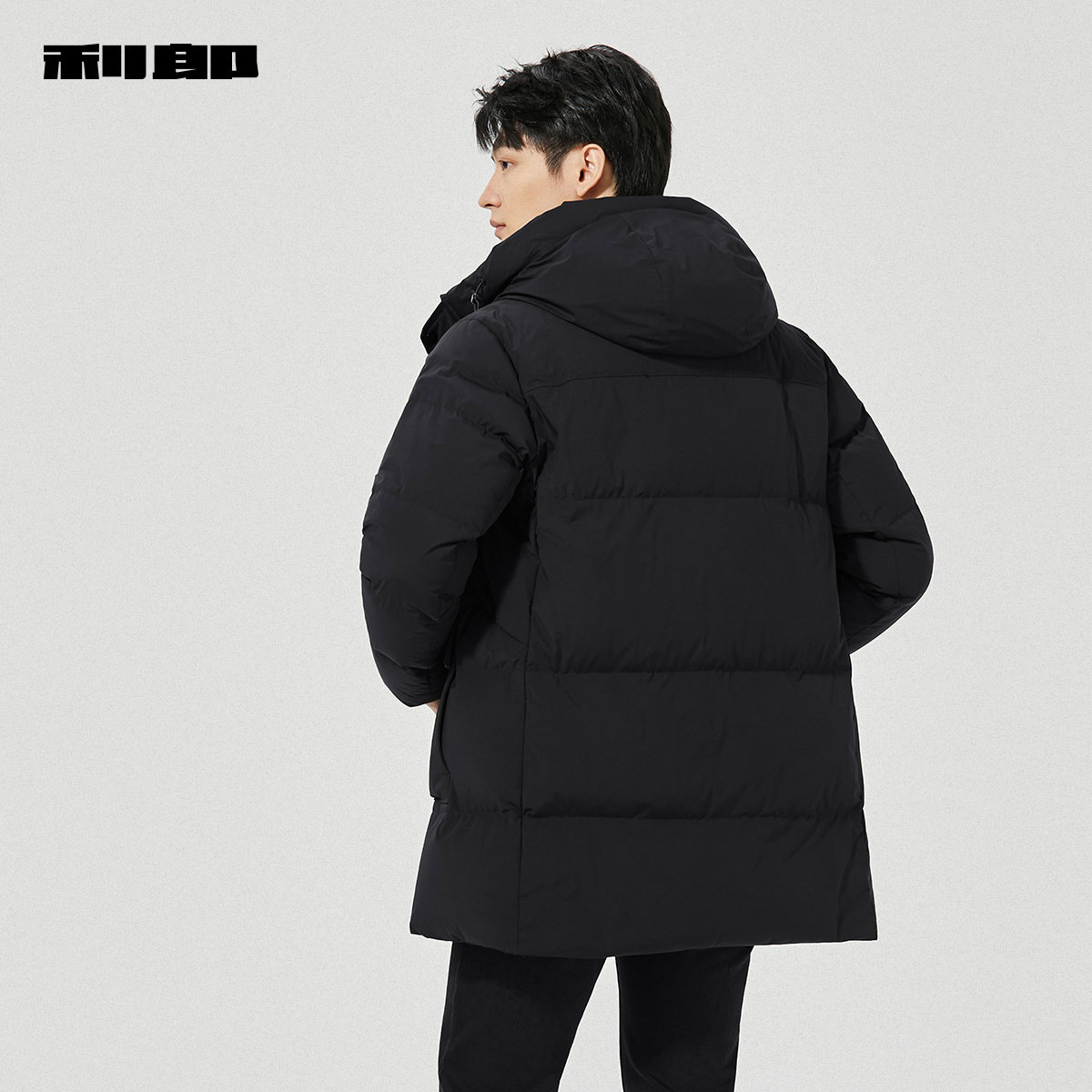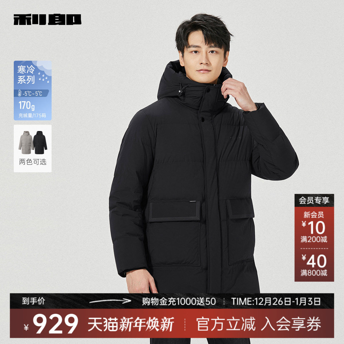 利郎奥莱 羽绒服男士连帽中长款2025冬季新款保暖商务休闲外套男