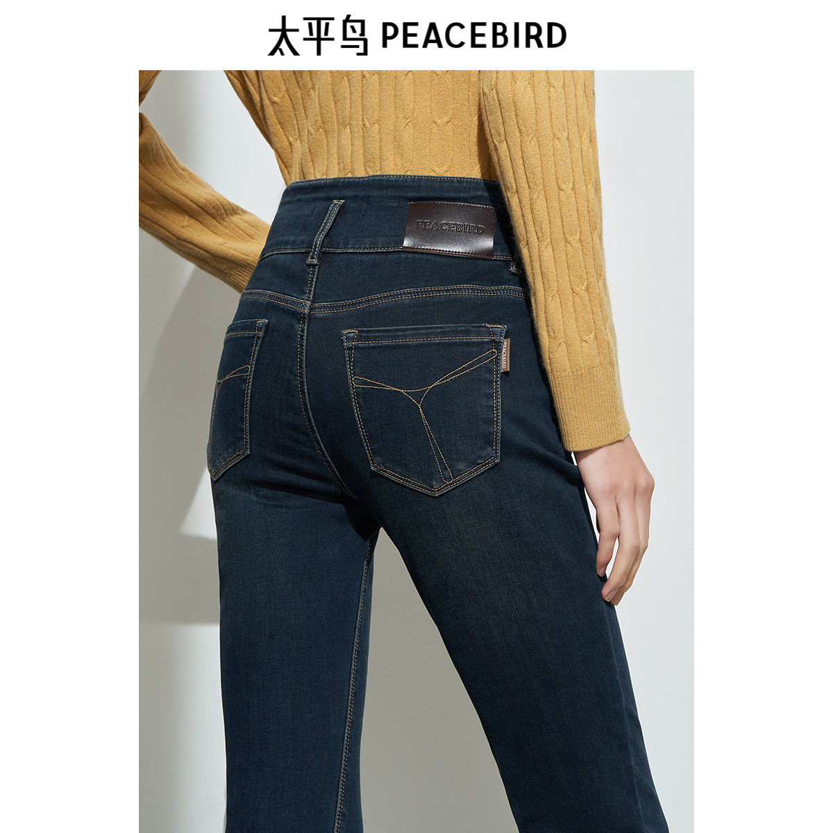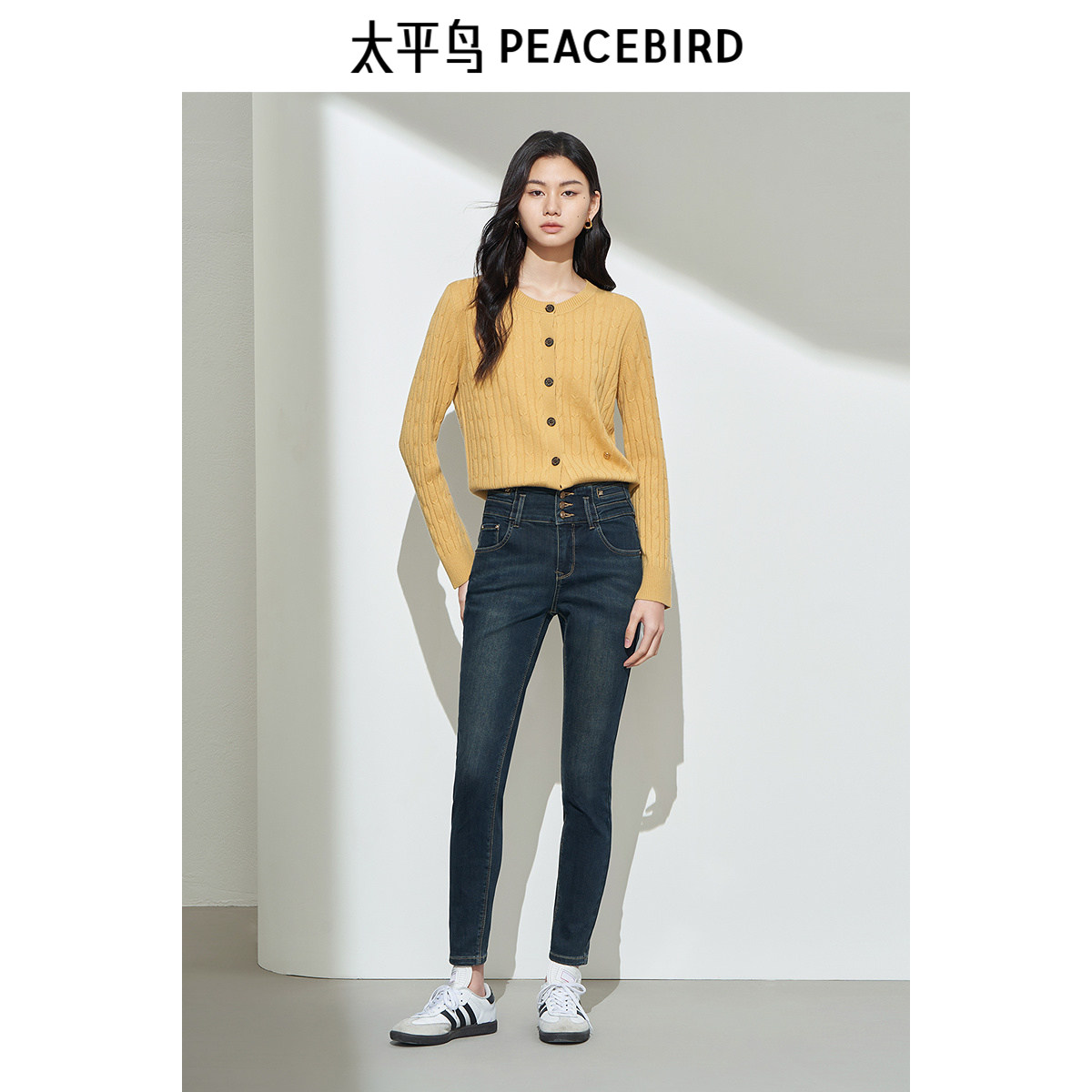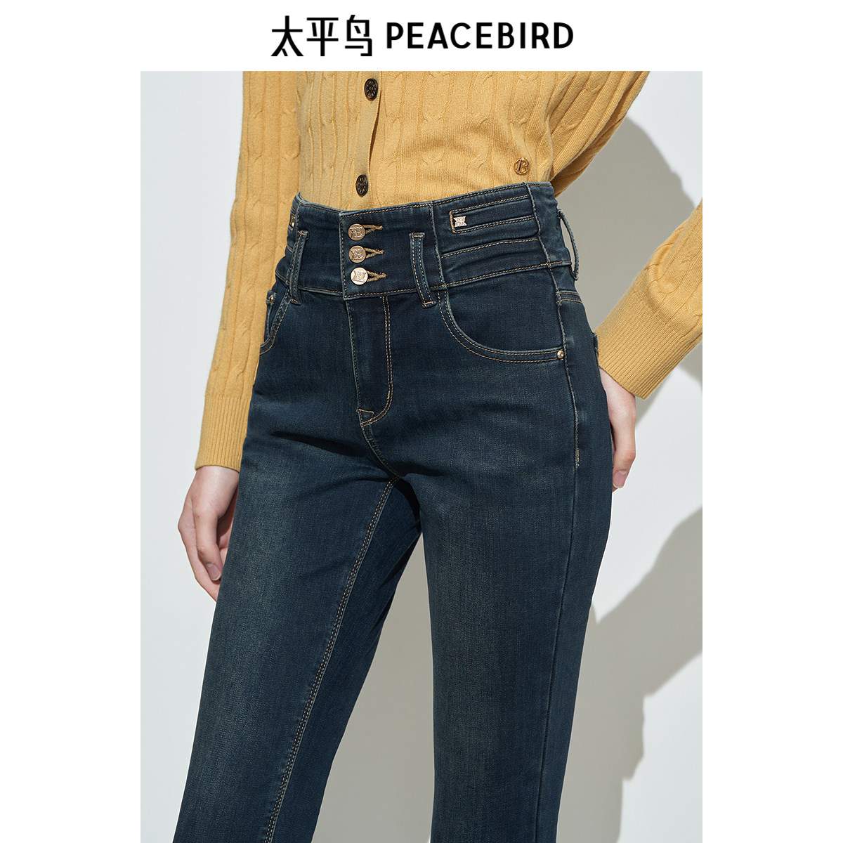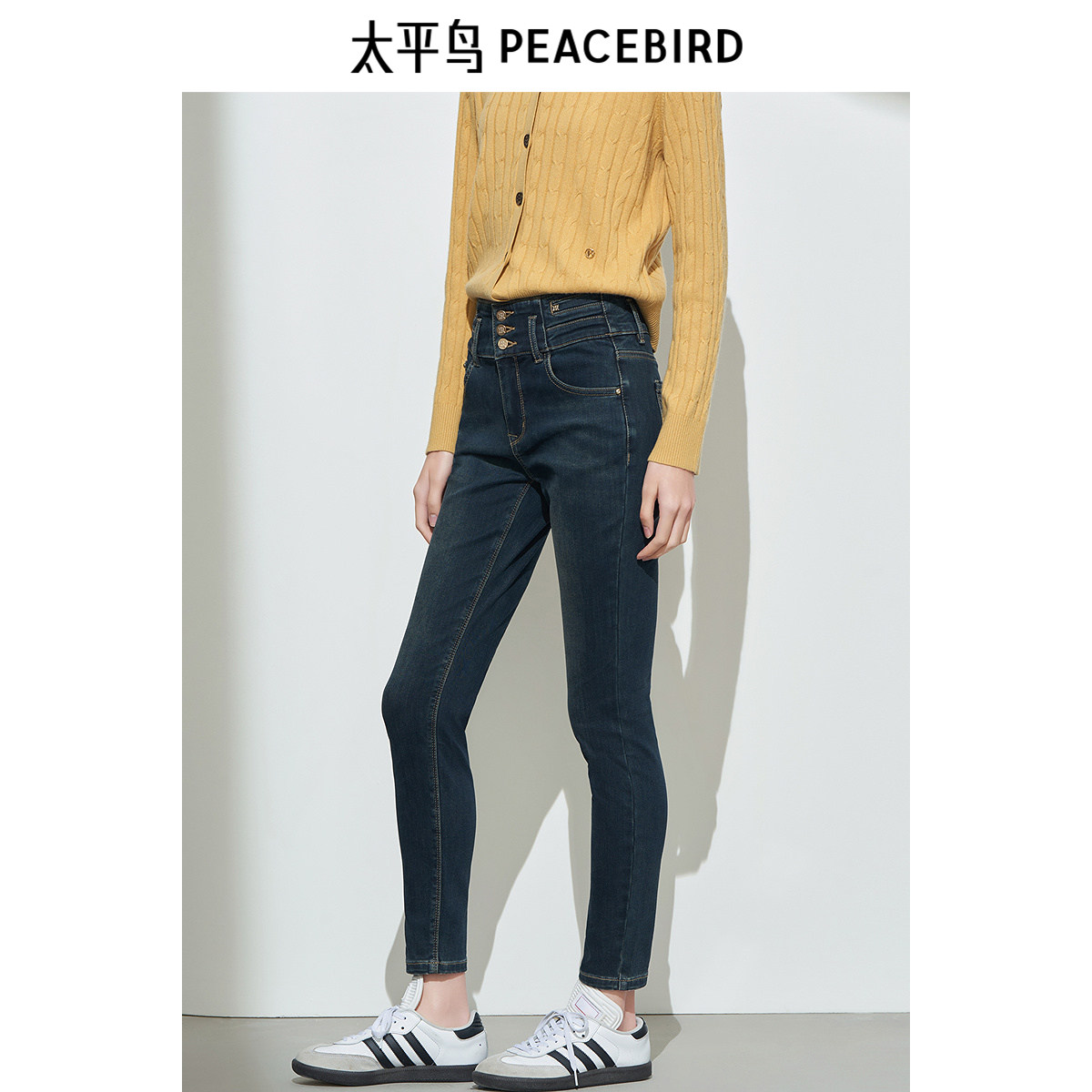 太平鸟女装2025冬季新款时尚高腰显瘦磨毛小脚牛仔裤A1HAE4440