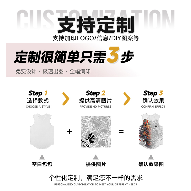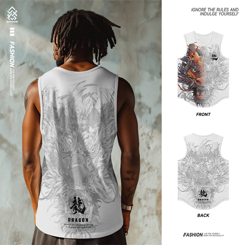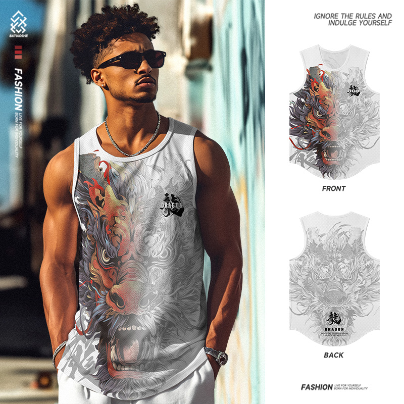 2025夏季新款国潮印花背心男中国风休闲无袖T恤宽松运动健身上衣