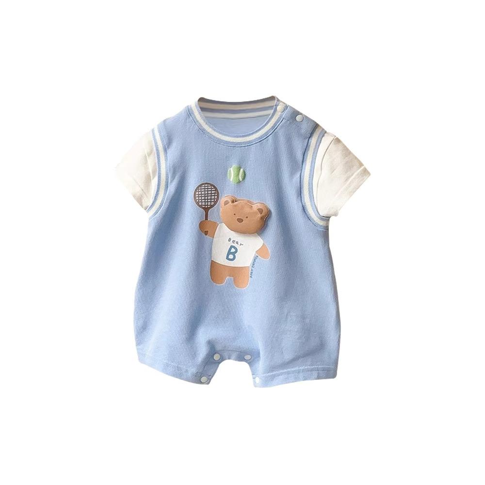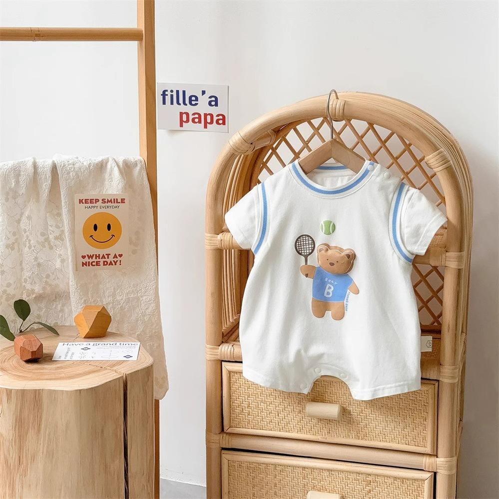 超萌洋气婴儿衣服夏季短袖男宝宝连体衣可爱小熊夏天外出哈衣爬服
