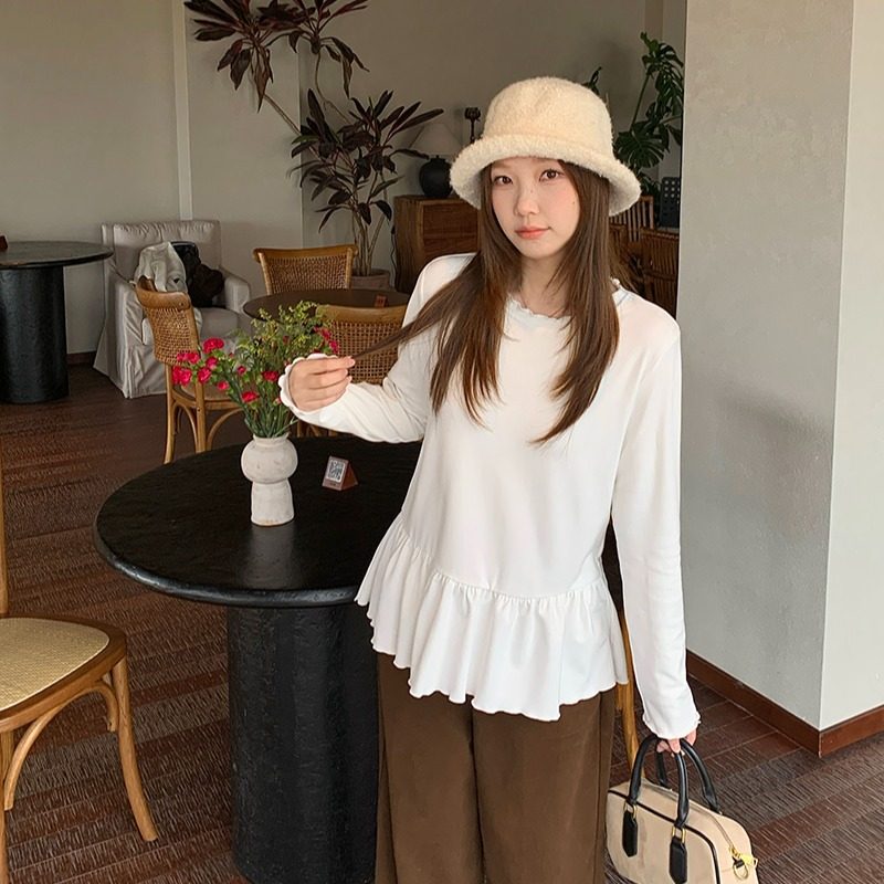 小吉家大码女装秋冬新款胖mm时尚加绒加厚荷叶边宽松内搭长袖上衣