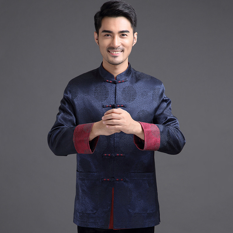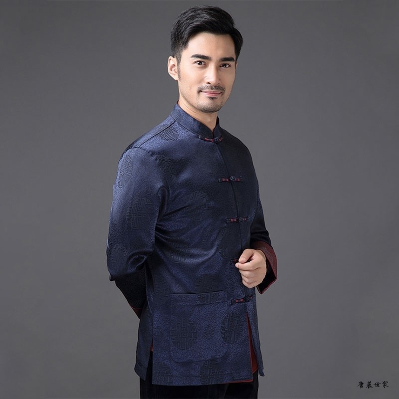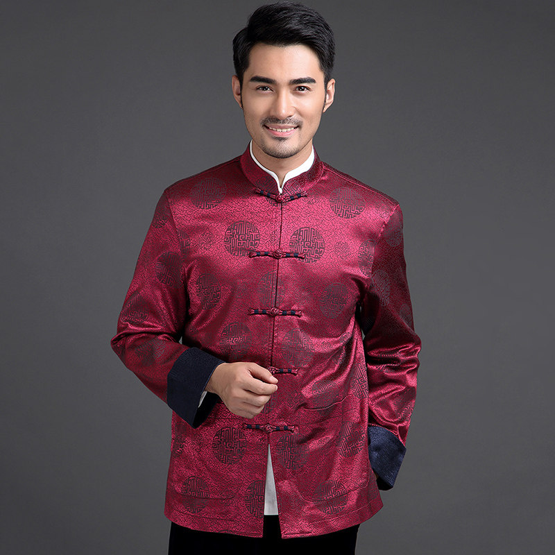 中老年唐装男秋冬长袖生日外套爸爸装喜庆中国风休闲盘扣中式棉服