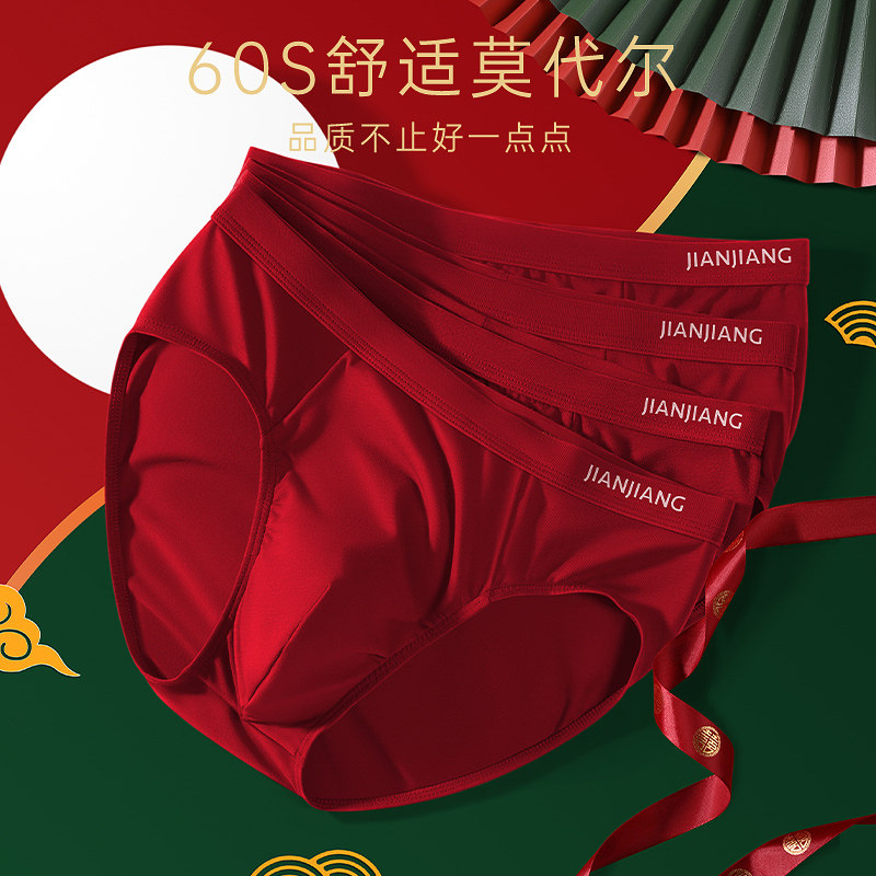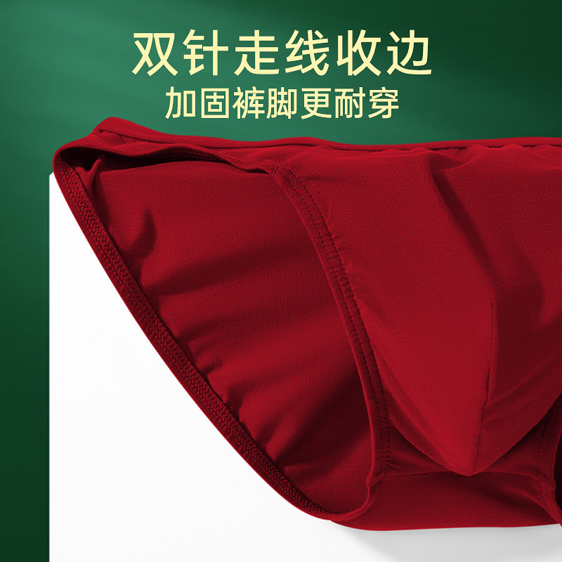 健将男士三角裤莫代尔透气内裤酒红色冰丝本命年结婚喜庆男生短裤