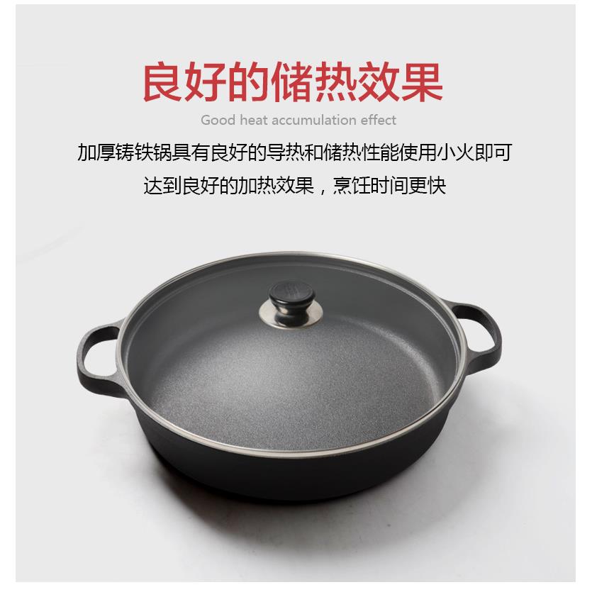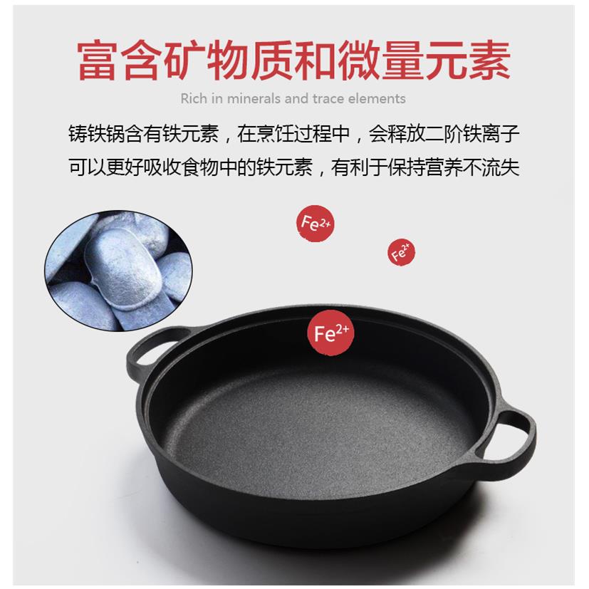 铸铁平底锅煎锅家用不粘烙饼锅无涂层加厚水煎包生铁锅电磁炉通用
