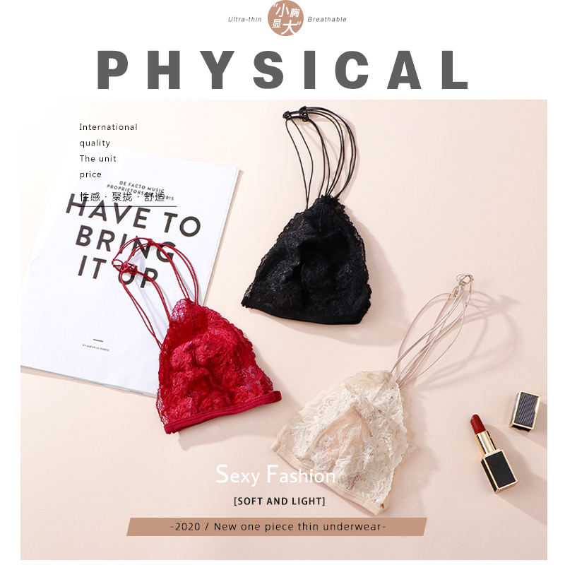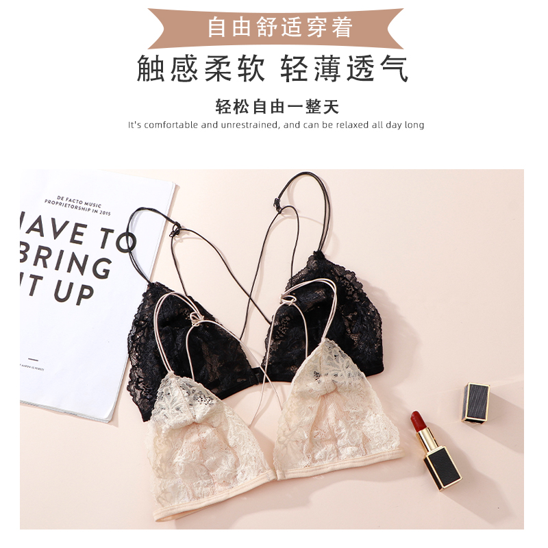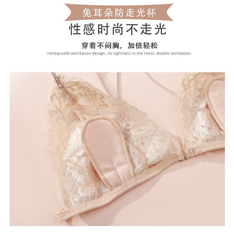 夏季薄款性感蕾丝无钢圈法式内衣兔耳朵细带前扣美背透气舒适文胸