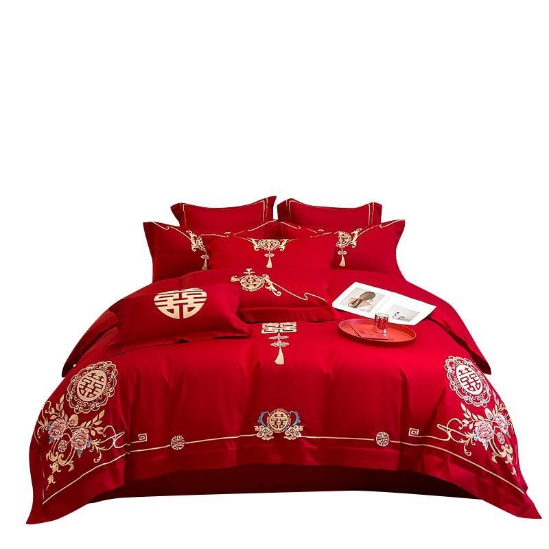 中式100支结婚四件套红色婚庆被套婚房喜被床单陪嫁床上用品4